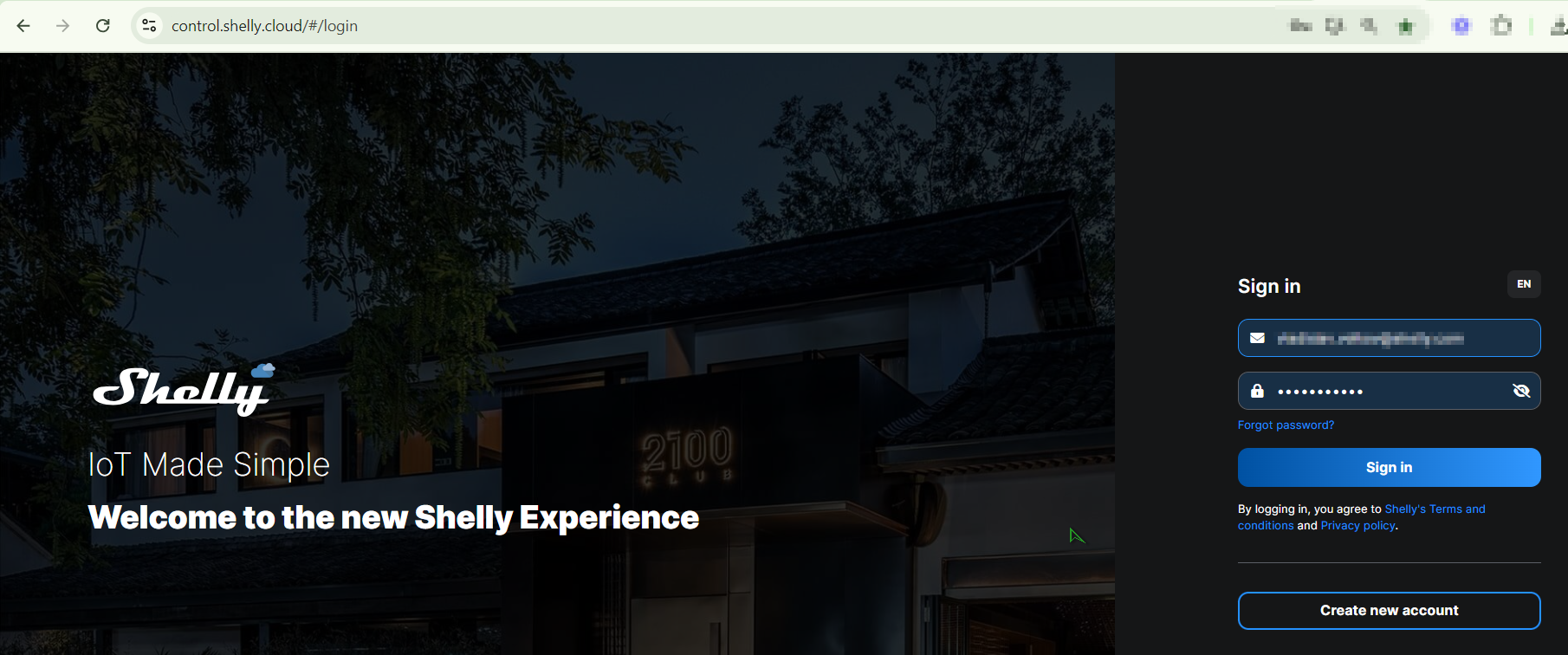 - Перейдите в приложение Shelly Control или войдите в свою учетную запись через браузер.