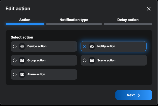 Однако вы можете настроить различные типы действий или уведомлений в зависимости от ваших предпочтений и потребностей, вы даже можете добавить задержку, если это необходимо. Для ознакомления с различными вариантами, пожалуйста, посмотрите скриншоты ниже: