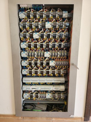 - Учитывая потенциально высокую нагрузку и обширную проводку, обеспечение безопасности за счет защиты от перегрузки по току и перенапряжения было критически важным. Система имеет звездообразную конфигурацию, при этом почти все кабели проложены к главному электрическому щиту.