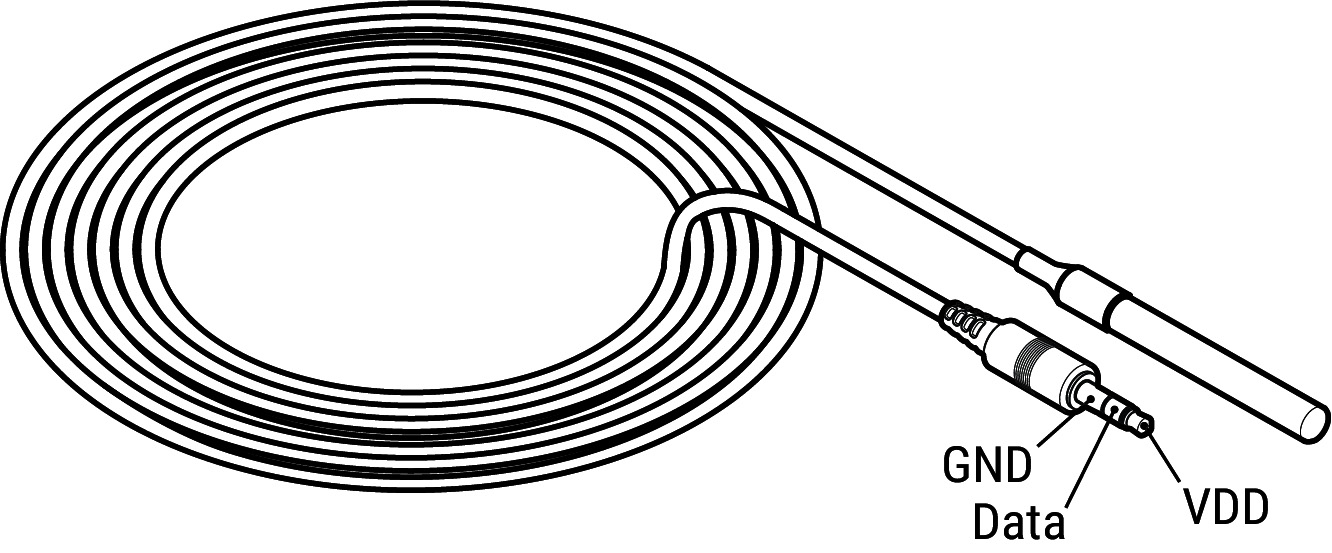 [править]Температурный датчик для измерения температуры окружающей среды и жидкостей с разъемом 3,5 мм и кабелем длиной 1 м.