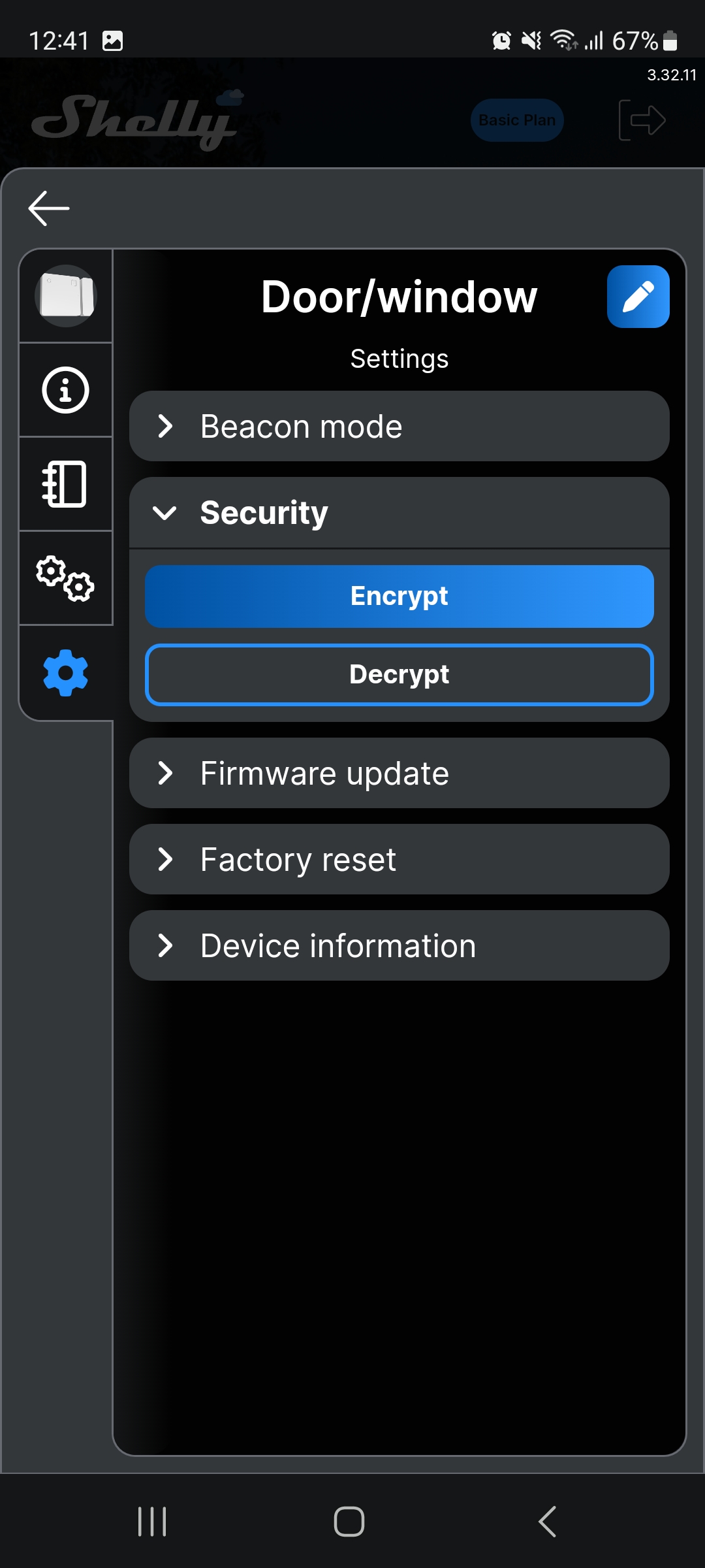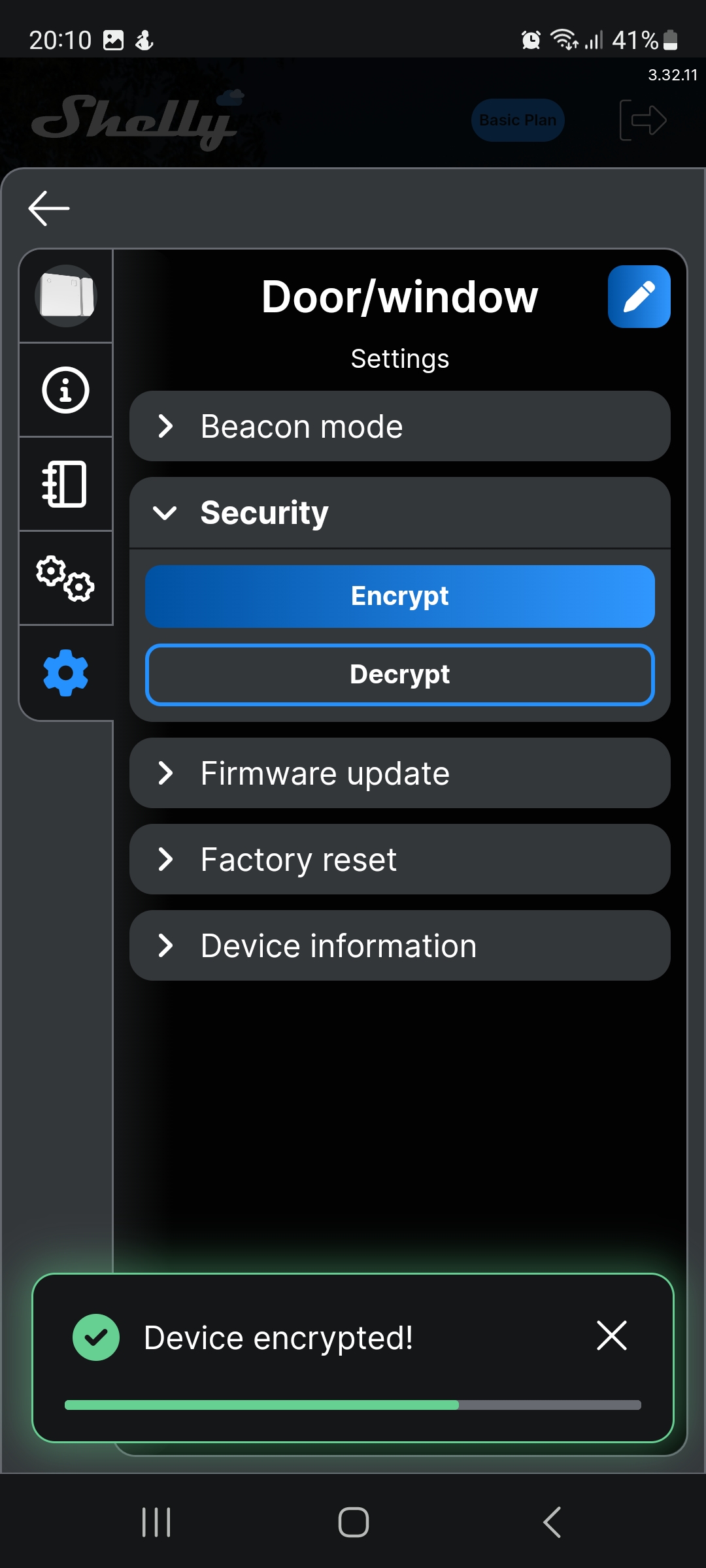 Перед началом шифрования убедитесь, что на вашем Bluetooth-устройстве установлена ​​последняя версия прошивки. Чтобы проверить наличие обновлений, перейдите в раздел Настройки устройства > Обновление прошивки . Для получения дополнительной информации см. нашу базу знаний Shelly по адресу [https://kb.shelly.cloud/ .