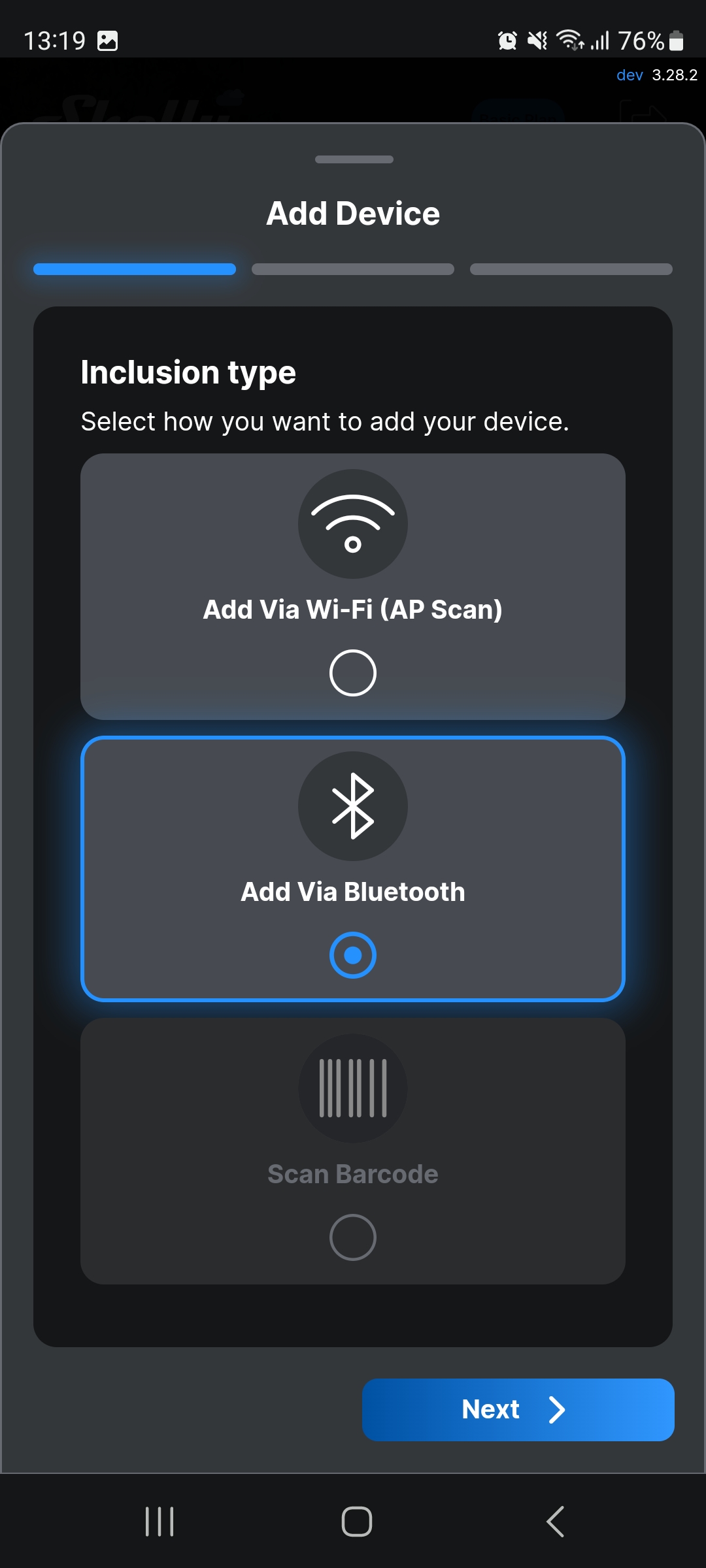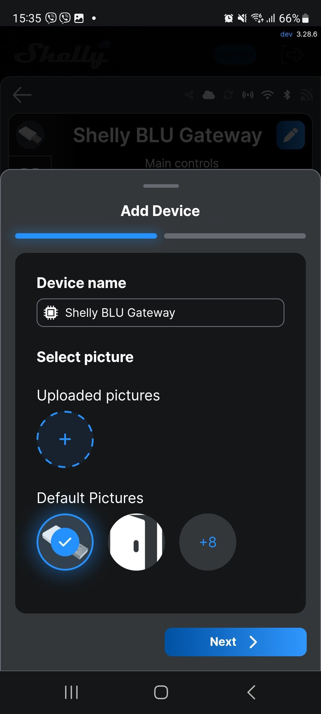 - Выберите «Shelly Blu Gateway» из списка, затем выберите «Далее» (рис. 4).