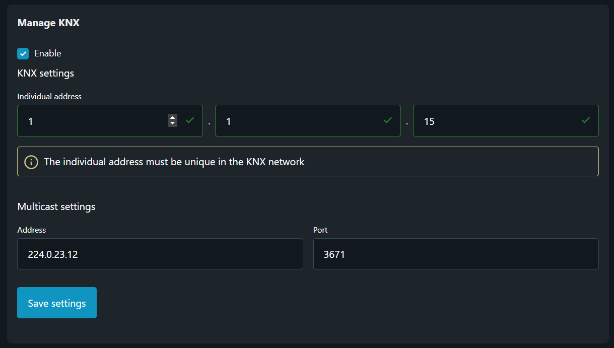 [править]Как и любое устройство KNX, устройства Shelly также нуждаются в правильной настройке для обмена данными с другими устройствами KNX. Вам необходимо согласовать эту информацию с вашим интегратором KNX и сетевым администратором.