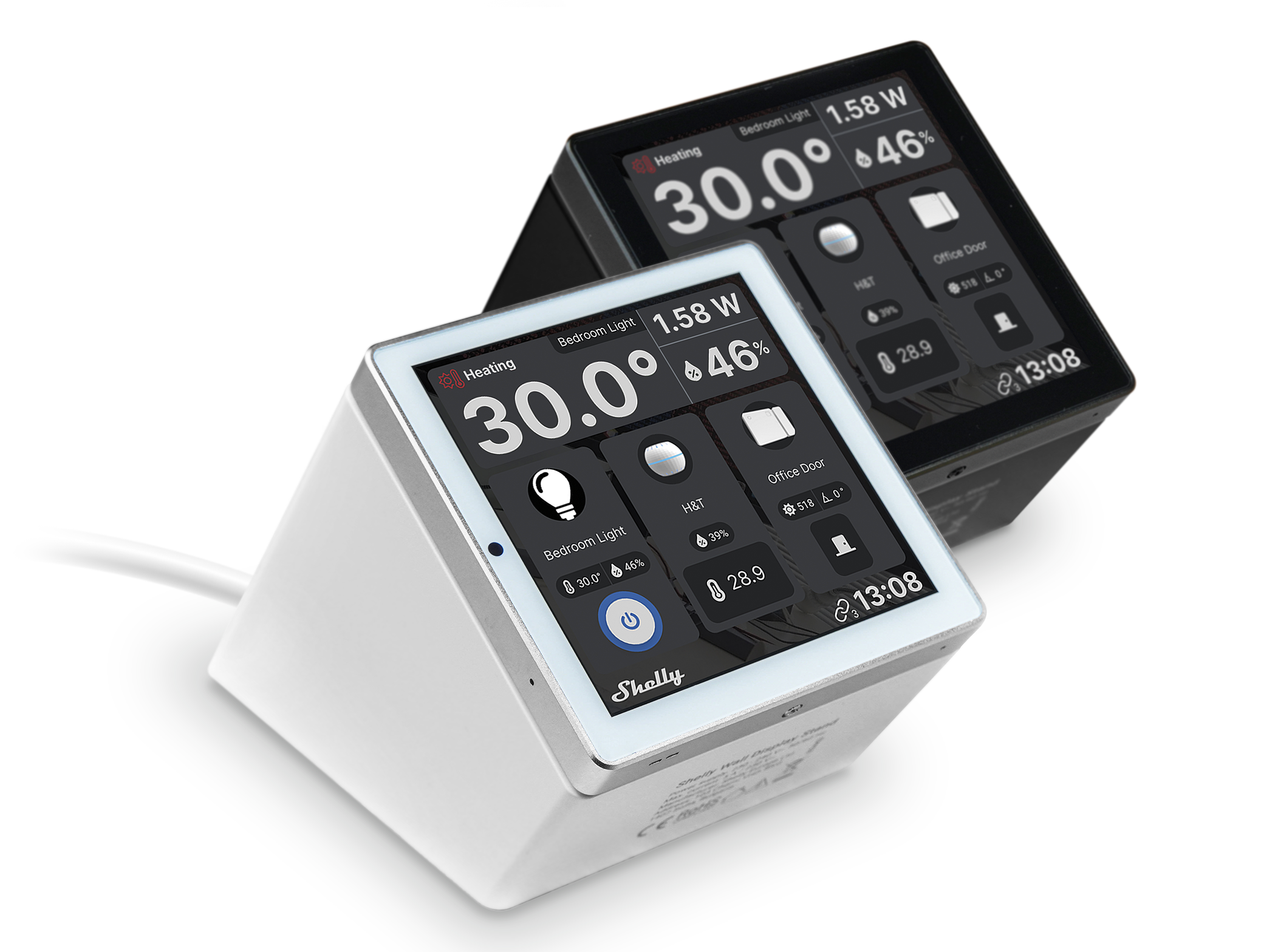 - Настольная подставка Shelly для настенного дисплея устанавливает угол обзора Shelly менее 35° для удобства взаимодействия.